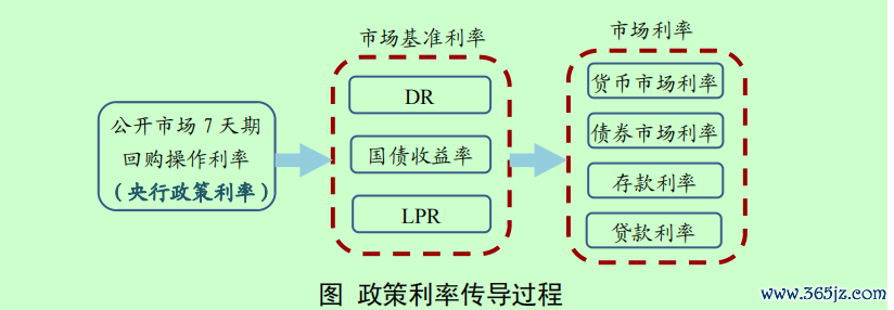 上述《报告》指出,人民银行通过调整政策利率,也就是7 天期回购操作利率,影响货币市场利率(如同业存单利率)和债券市场利率(如国债收益率),并影响存贷款利率(如贷款市场报价利率LPR和银行存款挂牌利率),进而促进消费和投资,提升社会总需求,支持经济发展(见下图)。